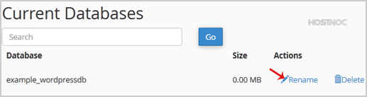 3. Under "Current Databases", You can see list of your all databases. Locate the Database and then click on "Rename" Icon.