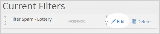 3. Under "Current Filters" You can see all of your existing filters, Click on "Edit" next to the appropriate one.