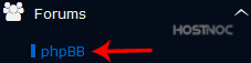 4. On the left side of your screen you should locate the "Forums" category. Click on it and then click on the "phpBB" link that will appear.