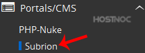4. On the left side of your screen you should locate the "Portal/CMS" category. Click on it and then click on the "Subrion" link that will appear.