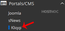 4. On the left side of your screen you should locate the "Portal/CMS" category. Click on it and then click on the "Kliqqi" link that will appear.