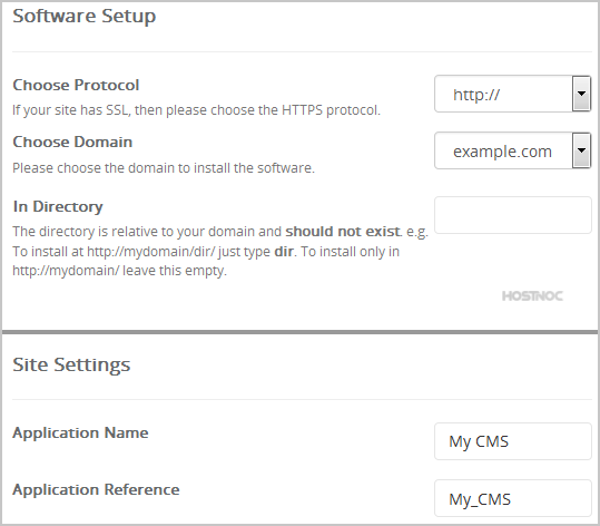 • In Directory: If you want to install this in a directory, for example example.com/directory, enter the directory name. Otherwise, leave this blank to install in your main domain example.com
