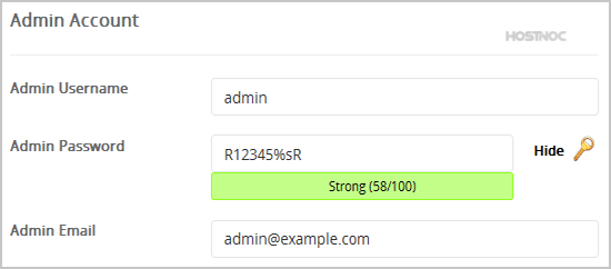 • Admin Username: Your new PyroCMS username (for security reason do not use the "Administrator" or the "Admin" username.)