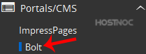 4. On the left side of your screen you should locate the "Portal/CMS" category. Click on it and then click on the "Bolt" link that will appear.