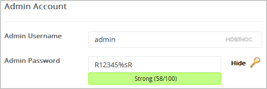 • Admin Username: Your new Fork username (for security reason do not use the "Administrator" or the "Admin" username.)