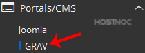 4. On the left side of your screen you should locate the "Portal/CMS" category. Click on it and then click on the "GRAV" link that will appear.