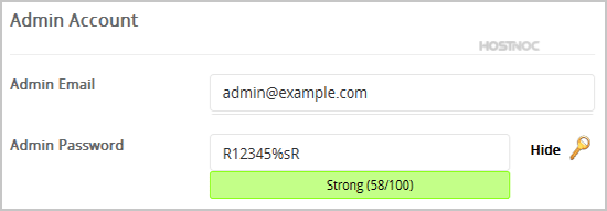 8. Under the "Admin Account" field enter the following information: