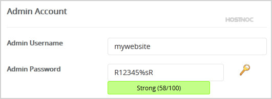7. Under the "Admin Account" field enter the following information: