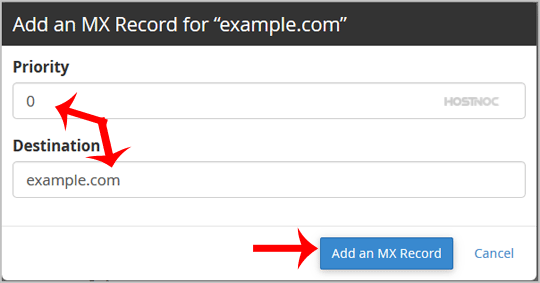 Now click the "Add a MX Record" button.